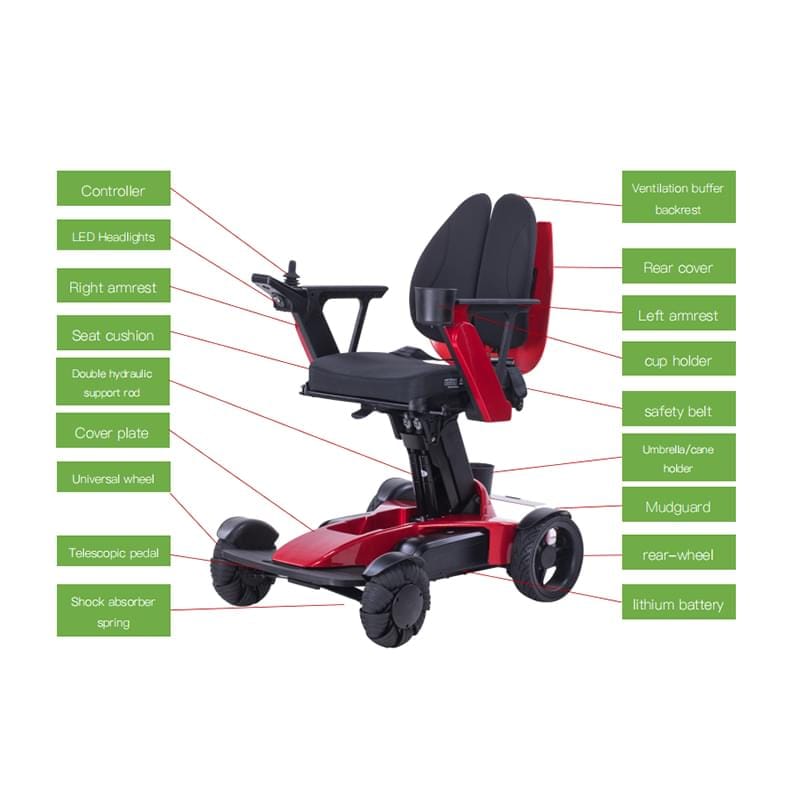 Nuestra Silla de ruedas eléctrica todoterreno inteligente Está diseñada para combinar control inteligente con capacidad todoterreno. Fabricada con un cuerpo ligero de aluminio y resortes de acero de aleación de manganeso, esta silla es duradera y portátil. Su práctico diseño plegable facilita su almacenamiento y transporte, ya sea para recados diarios o para viajes. Es la solución perfecta para quienes buscan potencia, comodidad y la libertad de ir a cualquier parte.